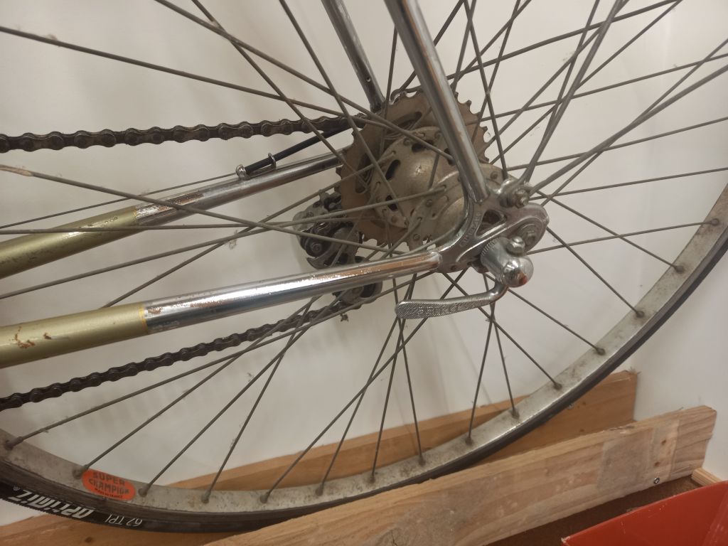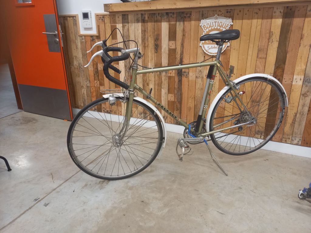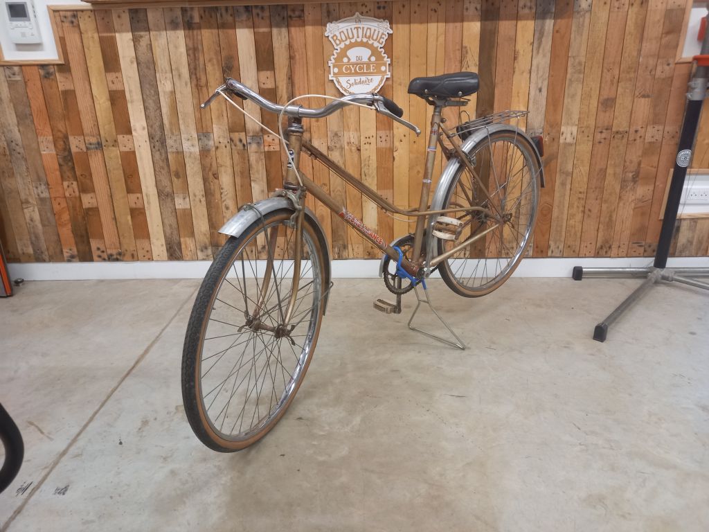 Vélo entièrement refait, couleur d’origine, patine traitée antirouille, changement des pneus à prévoir.