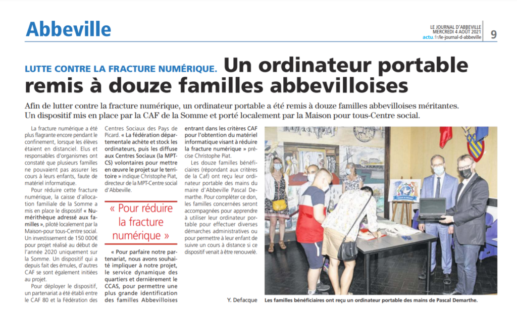 Un ordinateur portable remis à douze familles abbevilloises